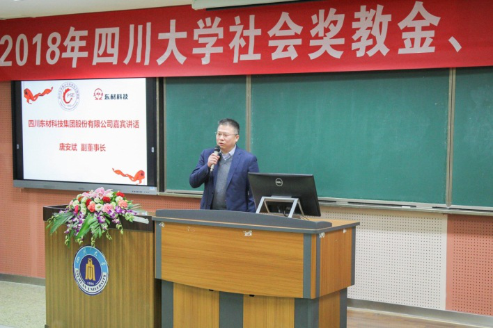 12月8日下午,四川大学社会奖教金、奖学金颁奖典礼在四川大学研究生院231教室隆重举行。公司副董事长、国家企业技术中心主任、国家绝缘材料工程技术研究中心主任、qwdb鉴黑担保网研究院院长唐安斌,人力资源部部长赵小红代表公司与其他设奖单位代表、四川大学院校代表以及获奖师生共200余人参加了本次颁奖典礼。典礼由高分子科学与工程学院...